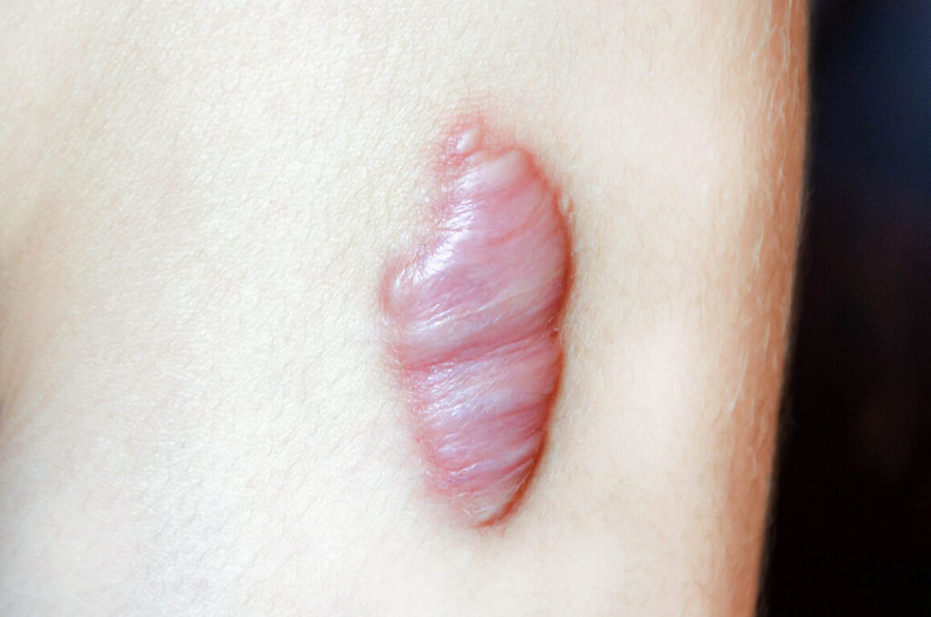 La formation de cicatrices chéloïdes implique une réponse anormale au processus de cicatrisation, lors duquel il y a une surproduction de collagène, ce qui a tendance à engendrer un développement de la cicatrice en dehors des limites de la plaie d’origine.